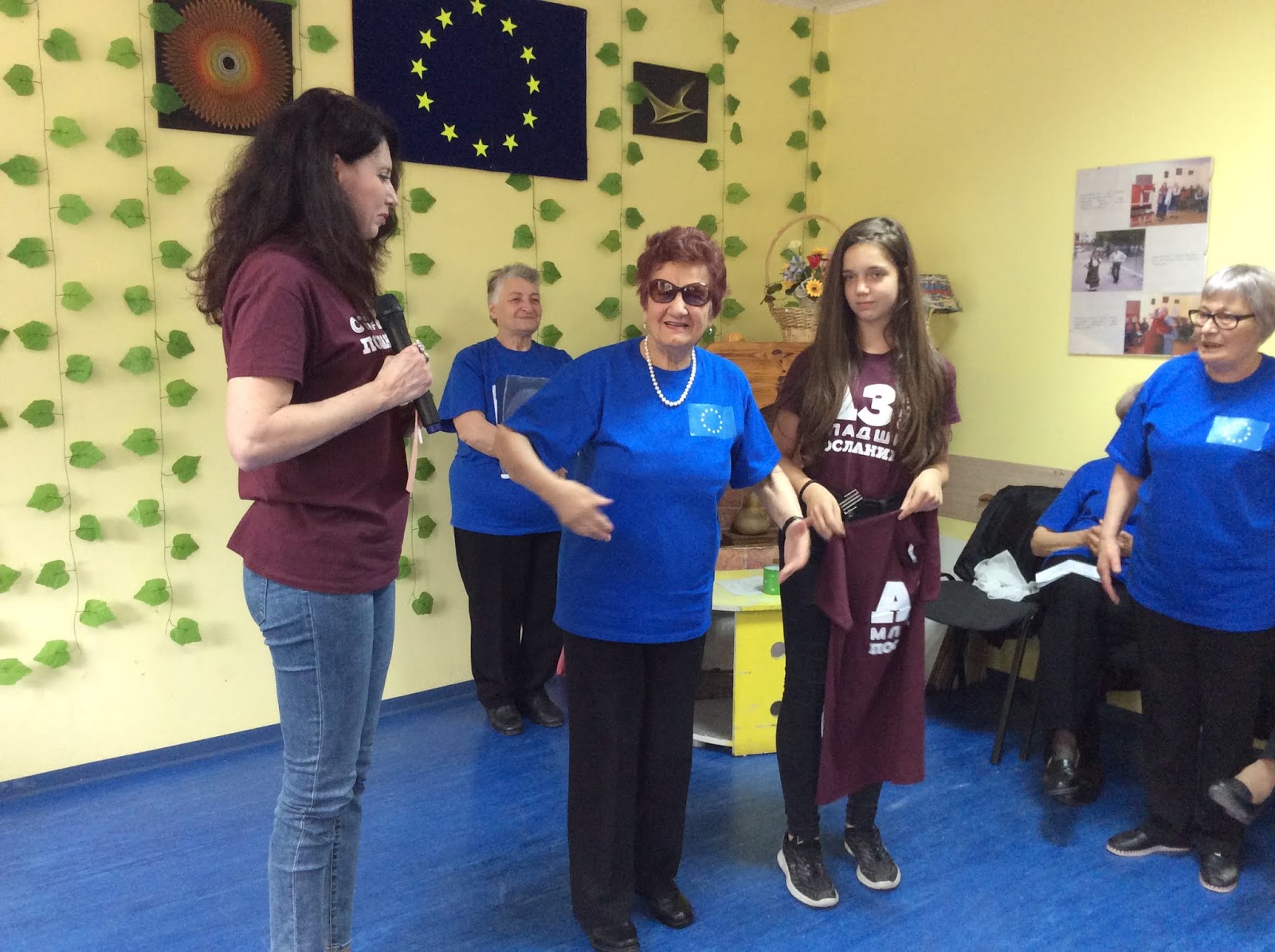 Кина Кузнецова, една прекрасна дама, активно участваща в трудотерапия, също стана младши посланик, а тениската връчи младши посланик Вероника Пенева – спорт баскетбол.